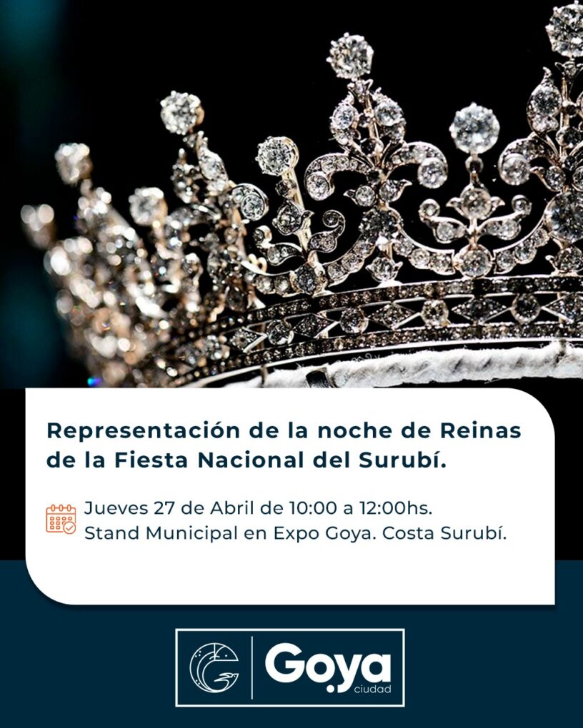 La secretaria de Educación, Sonia Espina comunicó que el día jueves 27 de abril en el horario de 10 a 12 horas, en Costa Surubí, se hará una “representación de la noche de reinas del surubí” y se elegirán “reinita y princesa” entre escuelas primarias de Goya. En el jurado estará Bettina Tones.