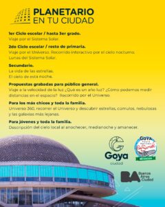 “El Planetario, que es una copia del Galileo Galilei de Buenos Aires, estará desde el miércoles. Con distintas funciones. Vamos a estar acompañando desde la Secretaría de Educación. Será con entrada gratuita”, detalló.