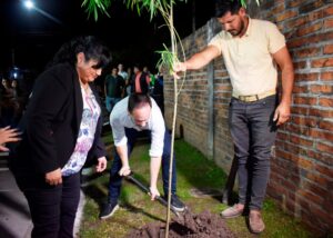 Asimismo, reafirmando el compromiso del cuidado del ambiente, creando un pulmón verde, los vecinos y autoridades municipales y provinciales plantaron la especie arbórea conocida popularmente como “campanita de flores amarillas”.