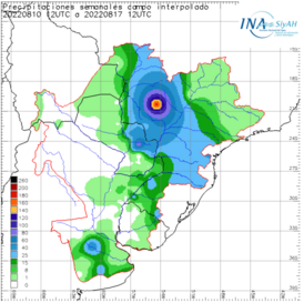 Para la semana próxima, según la previsión meteorológica considerada, podrían esperarse eventos precipitantes leves y aislados sobre el área de aporte a los ríos afluentes al río Paraná en territorio argentino.