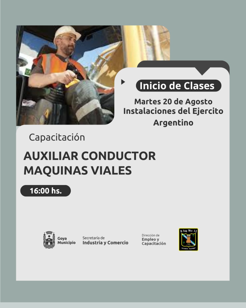 La Municipalidad de Goya, en colaboración con el Ejército Argentino, anuncia el inicio de una nueva capacitación del curso de “Auxiliar Conductor de Máquinas Viales”, una formación clave en el marco del convenio firmado entre ambas instituciones.