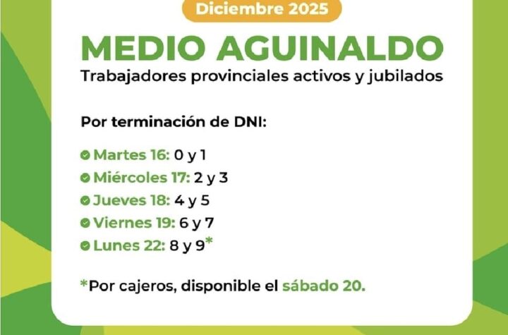 AGUINALDOS: EL GOBIERNO PROVINCIAL COMUNICÓ EL CRONOGRAMA DE PAGOS PARA TRABAJADORES PROVINCIALES ACTIVOS Y PASIVOS