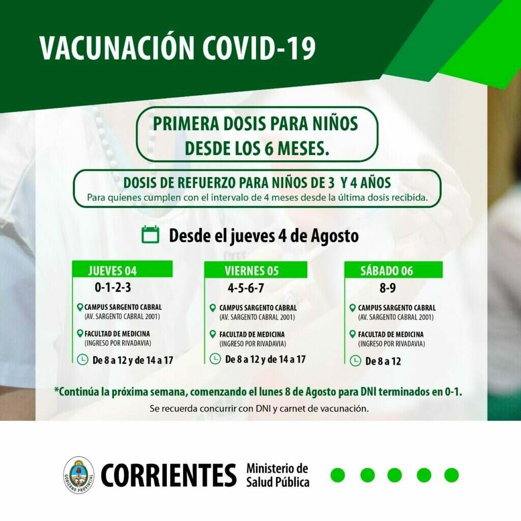 Al igual que en todo el país, desde este jueves Corrientes se suma al inicio de la vacunación contra COVID-19 para los niños desde los 6 meses de edad hasta los 2 años, 11 meses y 29 días, y para iniciar o aplicar refuerzos en población pediátrica de 3 y 4 años.