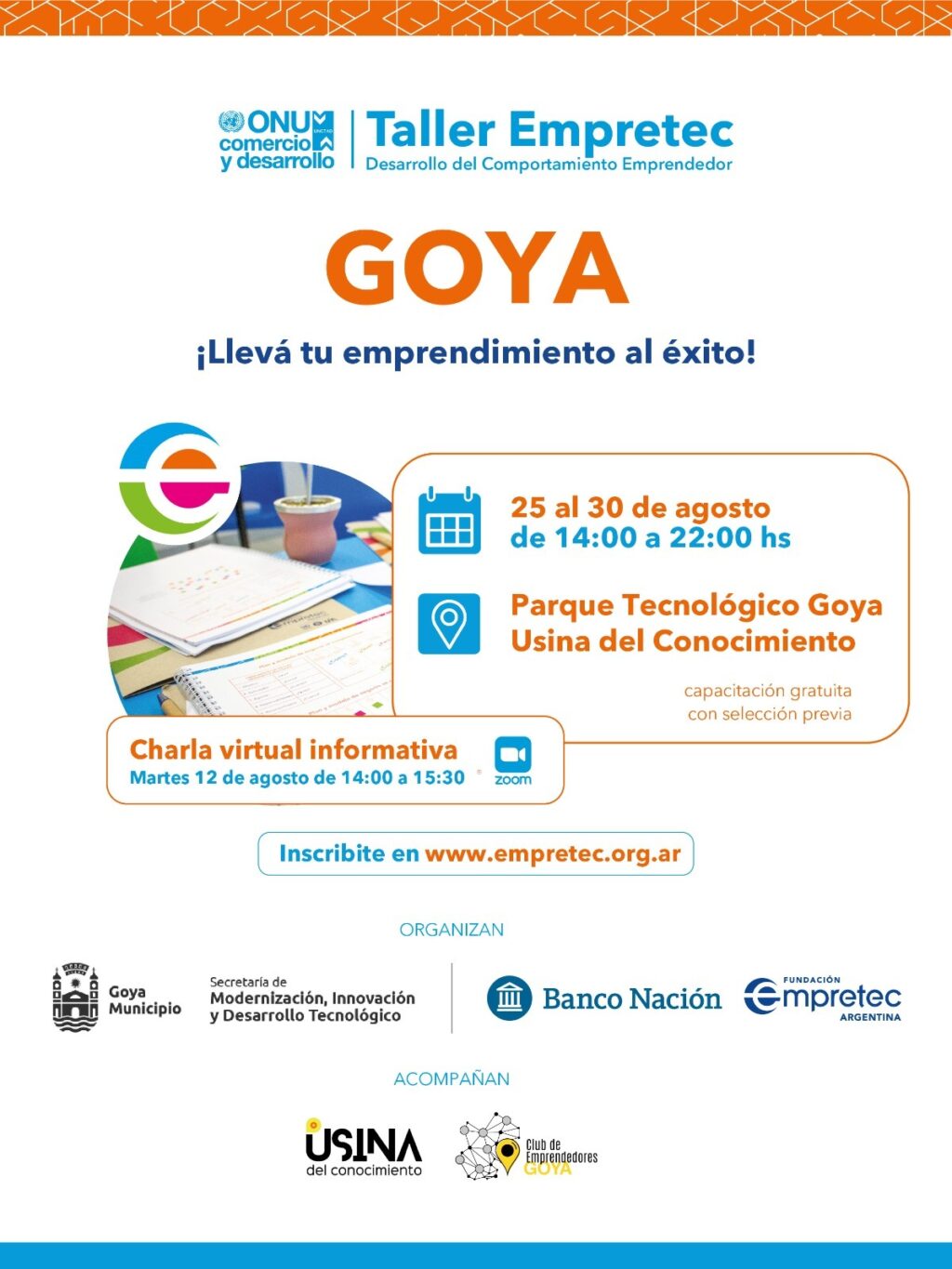La Usina del Conocimiento (Parque Tecnológico Goya) será sede del Taller de Desarrollo del Comportamiento Emprendedor, del 25 al 30 de agosto. Las inscripciones están abiertas hasta el 18 de agosto en www.empretec.org.ar/formacion