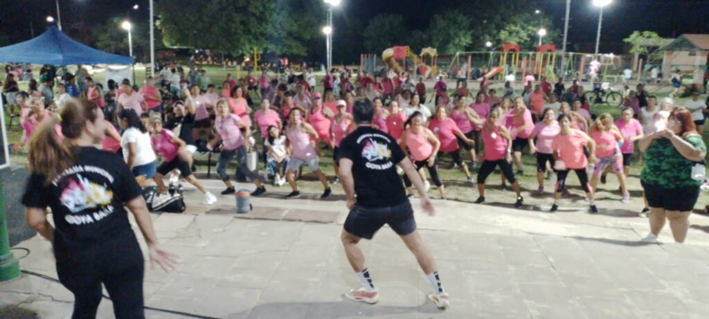 El evento, que fue abierta y gratuita, convocó a una importante cantidad de vecinos que se acercaron con ropa cómoda y muchas ganas de bailar. En su gran mayoría, los participantes lucieron remeras color rosa, aportando un tono simbólico a la actividad, realizada además en adhesión al Día Internacional de la Mujer, que se conmemora cada 8 de marzo.
