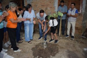Como en cada inauguración se procede a la plantación de especies arbóreas provenientes del Vivero Municipal. En la ocasión el intendente Mariano Hormaechea junto a funcionarios y vecinos plantaron 26 árboles de la especie caoba.
