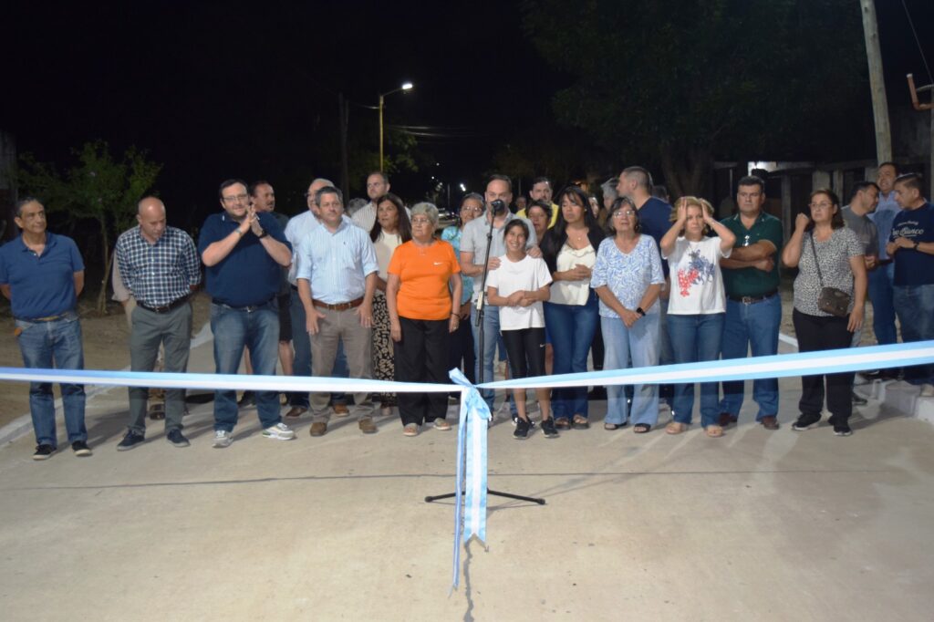 En la noche del jueves, el intendente Mariano Hormaechea presidió una nueva inauguración de cuadra de pavimento en hormigón armado, en el barrio Scófano, calle San Juan, entre Blas Luccioni y Juan XXIII.