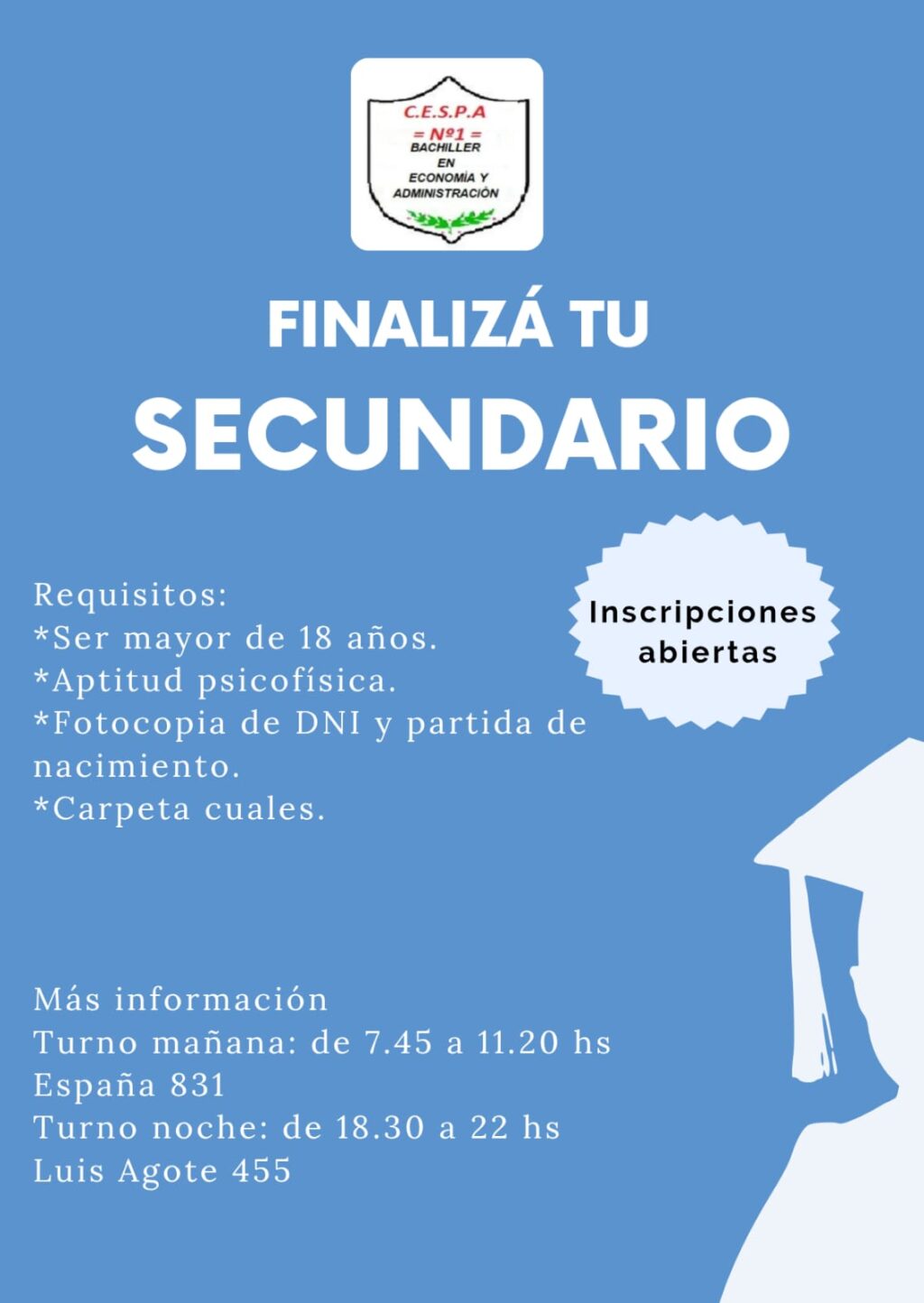 Docentes de este centro educativo en declaraciones a la AM local, dieron a conocer las posibilidades para concluir la secundaria, en el CESPA de Goya, en virtud de la formación continua; “Se pueden inscribir en cualquier época del año, para formar a las personas mayores de 18 años, absorbemos a los que no han podido concluir sus estudios en el nivel secundario, esta es una excelente oportunidad.”