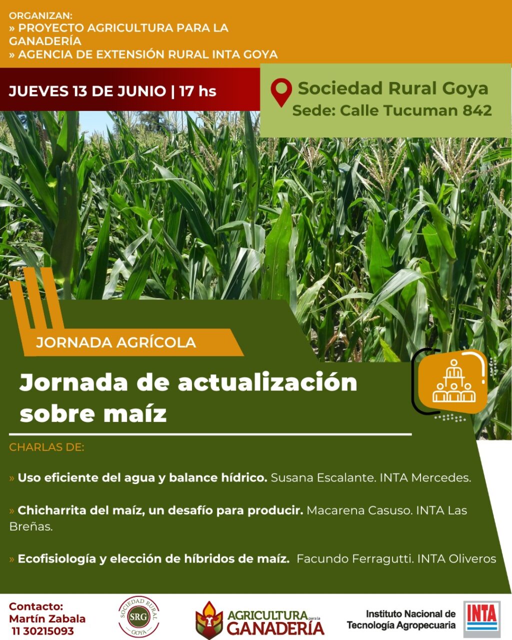 Este jueves 13 de junio desde las 17 horas en la sede local de la Sociedad Rural Goya se desarrollará una nueva jornada sobre el manejo del maíz. Generar conocimientos y espacios de intercambio técnico sobre el manejo del cultivo de maíz en los sistemas de producción de la región es el tema convocante.