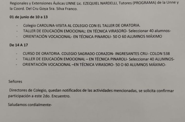Educación Locales JORNADA EDUCATIVA EN GOYA: ESTUDIANTES DE SECUNDARIA PARTICIPARÁN EN EL PROGRAMA “SIGAMOS ESTUDIANDO” 3 años atras