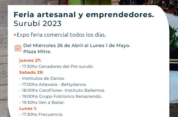 Generales ESTE MIÉRCOLES INICIA TRADICIONAL FERIA ARTESANAL Y DE EMPRENDEDORES SURUBÍ 2023 3 años atras