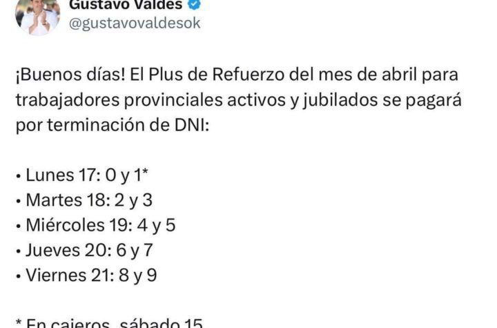 Generales PLUS DE REFUERZO: VALDÉS CONFIRMA PAGO DESDE EL 17 Y PROVINCIA INYECTA OTROS $1.300 MILLONES 3 años atras
