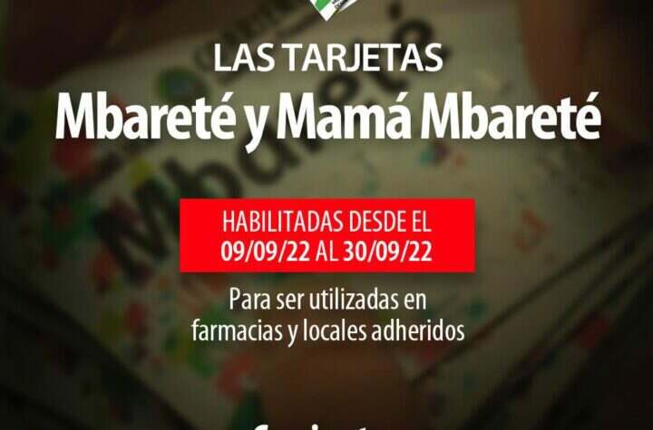 Generales SALUD PÚBLICA COMUNICA QUE SE ENCUENTRAN HABILITADAS LAS TARJETAS MBARETÉ Y MAMÁ MBARETÉ 3 años atras
