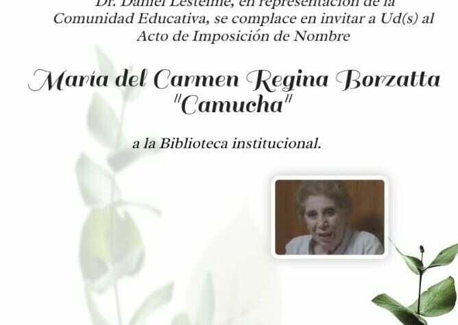 Educación Locales BIBLIOTECA DEL INSTITUTO SUPERIOR GOYA LLEVARÁ EL NOMBRE DE “CAMUCHA” BORZATTA 3 años atras