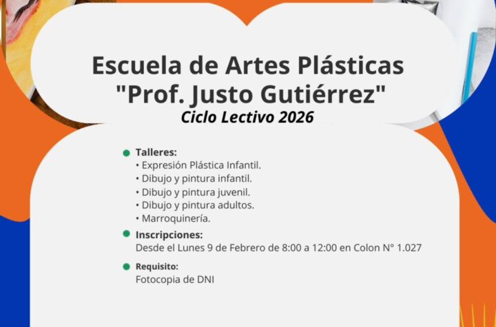 Locales DESDE ESTE LUNES 9 DE FEBRERO HABILITA PERIODO DE INSCRIPCIÓN PARA CICLO 2026 EN ESCUELA MUNICIPAL DE ARTES PLÁSTICAS “PROFESOR JUSTO GUTIÉRREZ” 2 semanas atras