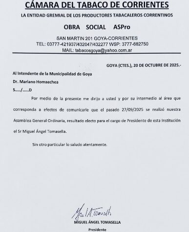 Política Provinciales MIGUEL ÁNGEL TOMASELLA FUE ELECTO PRESIDENTE DE LA CÁMARA DEL TABACO DE CORRIENTES 1 mes atras