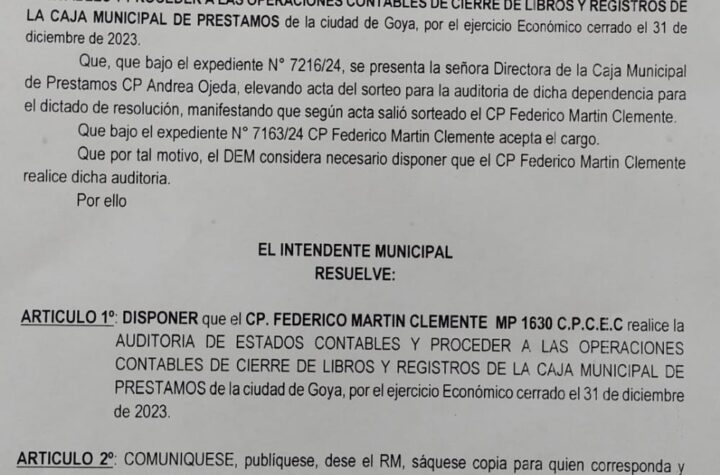 Locales DESIGNAN AL CONTADOR FEDERICO MARTÍN CLEMENTE PARA AUDITAR EL BALANCE 2023 DE LA CAJA MUNICIPAL DE PRÉSTAMOS 1 año atras