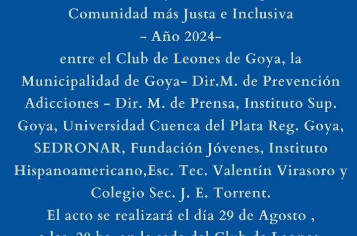 Generales Locales FIRMA DE CONVENIO PARA UN PROYECTO COMUNITARIO EN GOYA: “VALORES PARA UNA COMUNIDAD MÁS JUSTA E INCLUSIVA” 1 año atras
