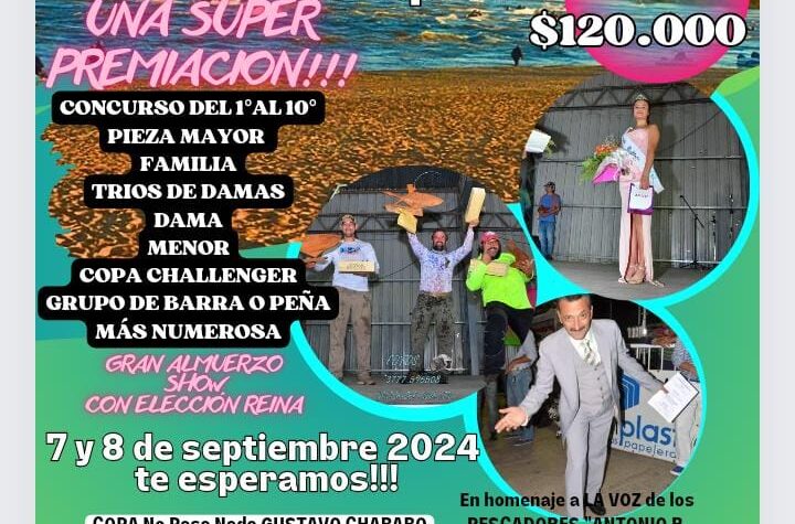 Espectáculos Locales 7 y 8 DE SEPTIEMBRE: SE VIENE EL 5º TORNEO DE PESCA EMBARCADA VARIADA 3 X ESPECIES ORGANIZADO POR PEÑA PIRA CAU 1 año atras