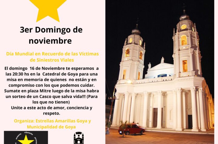 Locales GOYA RECORDARÁ A VÍCTIMAS DE SINIESTROS VIALES CON MISA Y ACTIVIDADES DE CONCIENTIZACIÓN 5 días atras