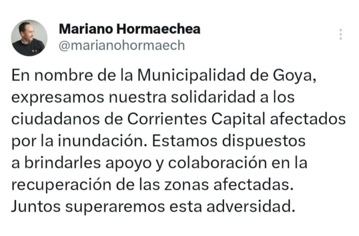 Generales Locales MUNICIPALIDAD DE GOYA EXPRESA SU SOLIDARIDAD HACIA LA CIUDADANÍA DE CORRIENTES AFECTADOS POR LA INUNDACIÓN 2 años atras
