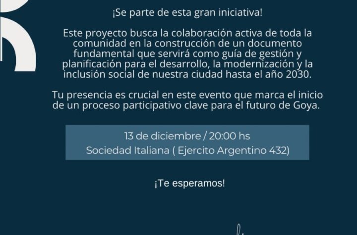 Generales Locales PACTO GOYA 2030: PRESENTACION MIERCOLES 20 HORAS EN LA SOCIEDAD ITALIANA 2 años atras