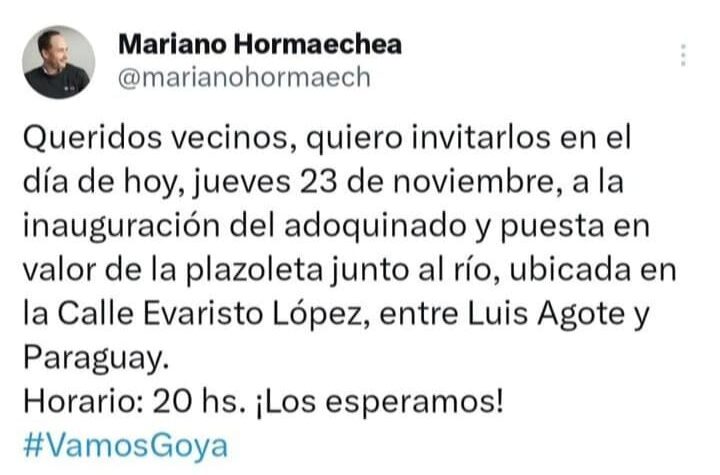 Generales Locales INAUGURACIÓN DE OBRA ADOQUINADO Y PUESTA EN VALOR DE PLAZOLETA A ORILLAS DEL RÍO EN GOYA 2 años atras