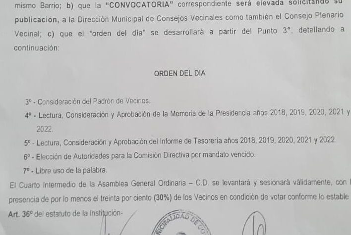 Generales Locales COMUNICADO Y CONVOCATORIA DE COMISIÓN DIRECTIVA DEL BARRIO VILLA SCOFANO 2 años atras
