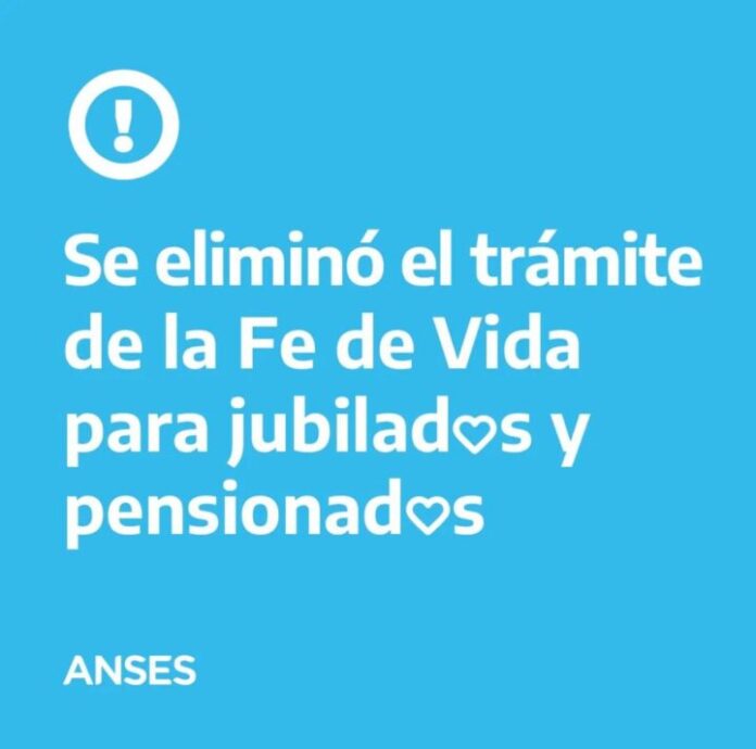 SE ELIMINÓ EL TRÁMITE DE LA FE DE VIDA PARA JUBILADOS Y PENSIONADOS