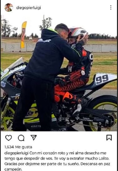 Diego Pierluigi, instructor de Lorenzo, le dedicó un emotivo mensaje en sus redes sociales. “Con mi corazón roto y mi alma desecha me tengo que despedir de vos. Te voy a extrañar mucho Lolito. Gracias por dejarme ser parte de tu sueño. Descansa en paz, campeón”, posteó.