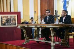 Finalizada la presentación de la obra, recientemente adquirida, se continuó con la conferencia, relacionada con la pintura, a cargo de la directora nacional de Patrimonio, María Isabel Baldasarre, y el historiador, crítico de arte, y docente Julio Sánchez Baroni.