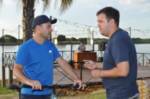 Durante la propuesta recreada por el Municipio, se contó con la visita y el acompañamiento del Intendente Mariano Hormaechea, quien conversó con el Director de Juventud Gastón Espinosa, de las próximas actividades programadas en ese espacio público, dialogo con los presentes, para continuar con su recorrido por el paseo costero.