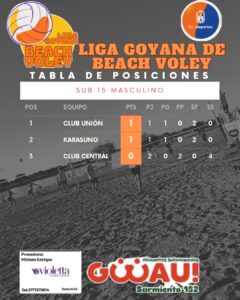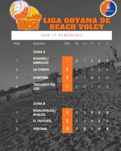 En Sub 15 femenino lidera Las Robertis; en Sub 17 Masculino encabeza la dupla Esquivel/Sánchez; en Sub 17 Femenino en la Zona A: Romero/Márquez; Zona B: Insaurralde/Avalos; en Sub 15 Masculino lidera el Club Unión.