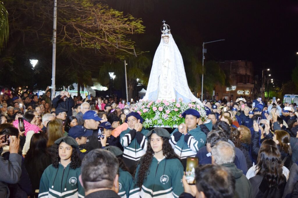 La Plaza Mitre como eje convocante de las autoridades municipales, Intendente, funcionarios, concejales, integrantes de las Fuerzas Armadas, de Seguridad y el público que supo aguardar la salida de la Virgen para recibir ese abrazo maternal, y recíprocamente poner en su corazón el agradecimiento de toda una comunidad.