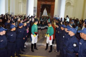 La Plaza Mitre como eje convocante de las autoridades municipales, Intendente, funcionarios, concejales, integrantes de las Fuerzas Armadas, de Seguridad y el público que supo aguardar la salida de la Virgen para recibir ese abrazo maternal, y recíprocamente poner en su corazón el agradecimiento de toda una comunidad.