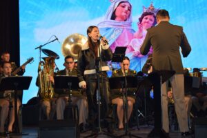 En la continuidad del festival, llegó el momento de la presentación de la Banda Militar “Puerto Argentino”, del Batallón de Ingeniero de Monte 12, bajo las batutas de sus maestros de banda, el Teniente Primero Alberto Esteban Córdoba y el Suboficial Mayor Ariel Callejas, con la particularidad de invitar a formar parte de su propuesta musical, a voces destacadas y músicos de nuestra ciudad, para interpretar temas del cancionero chamamecero, folclórico, baladas, incluidos ritmo tropical, luciéndose en cada uno de esos temas las voces de Brisa Díaz; Valeria Brito, Mariana Pozzer; Alejandra Moro; Jesica Ortiz; Ignacio Coronel, junto a músicos como Pablo Chamorro, “Kiki” Scagliotti y Franco Arévalo con el perfecto ensamble de los integrantes de la Banda Militar, sumando las voces del Sub Oficial Principal Sergio Pelozo  y el Cabo Primero Emanuel Pérez, como muestra de agradecimiento la Banda hizo entrega a los artistas invitados de un reconocimiento por esa participación.